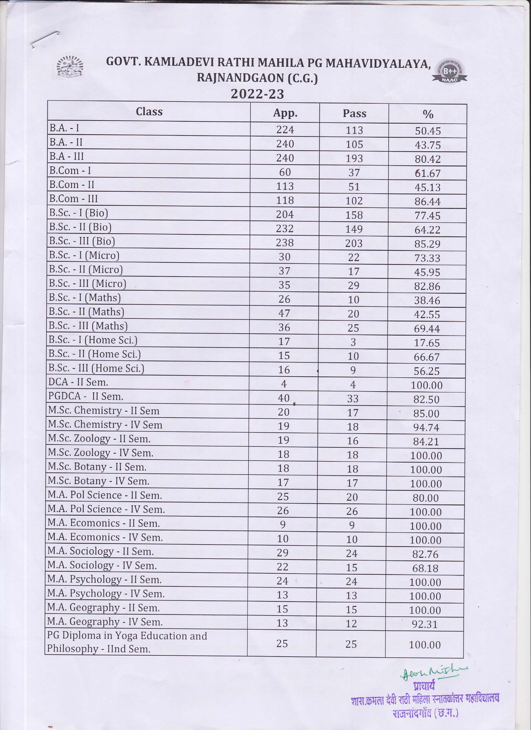 Results S.No. Title Downloads 1 Result 2024-25 Click here 2 Result 2023-24 Click here 3 Result 2022-23 Click here