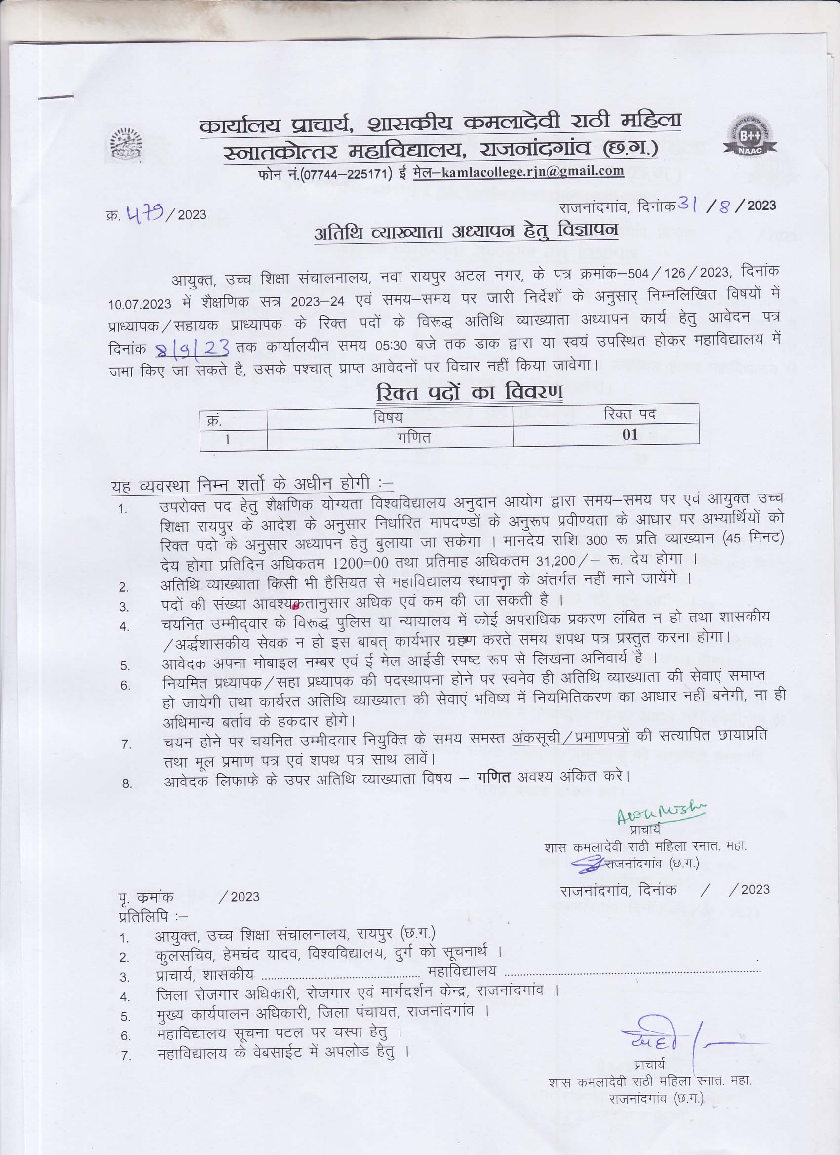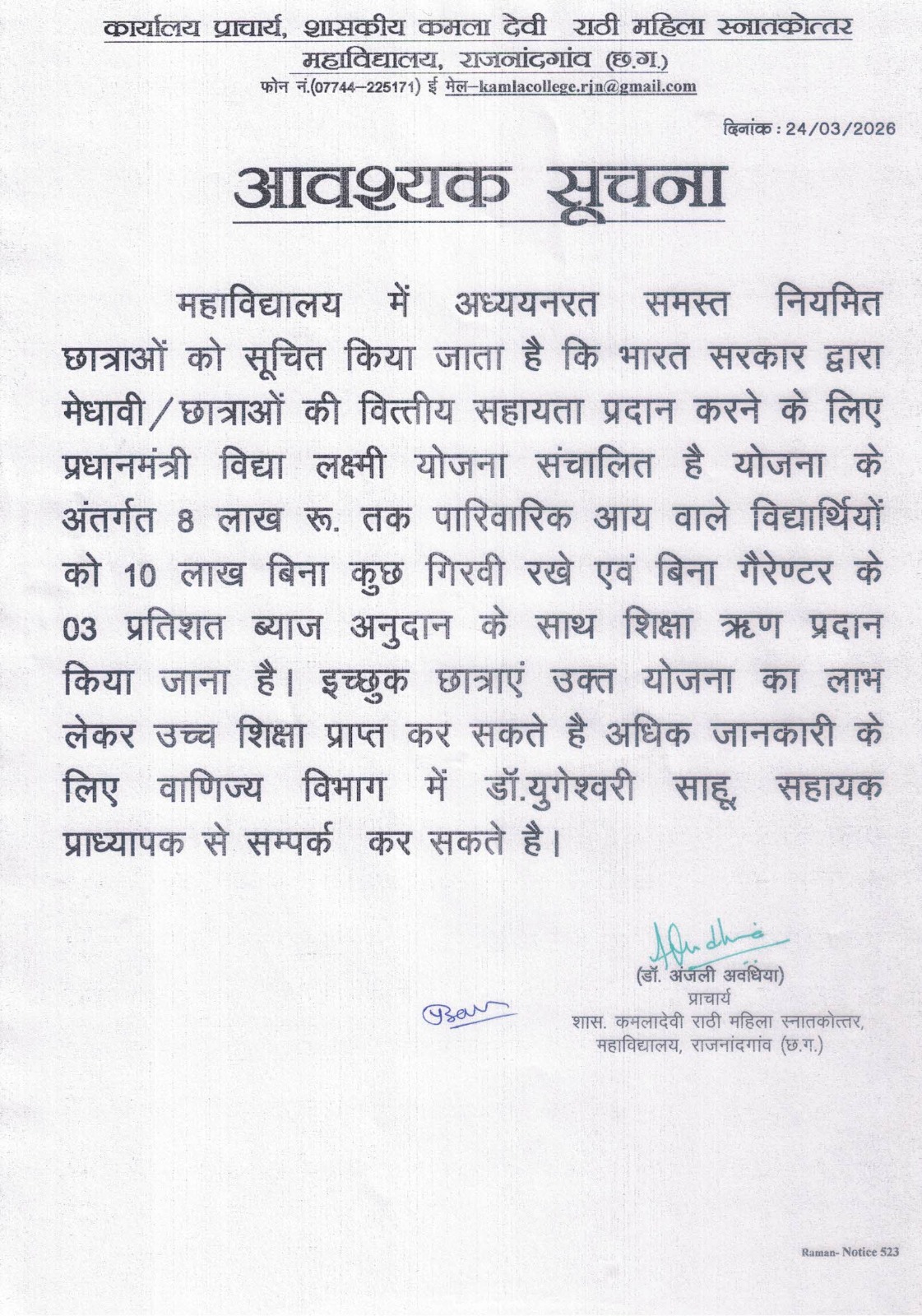Extended Date of National Conference As we have received many requests for extension, the last date for submission of abstracts for national conference to be organised on 18-19 November, 2019 is extended upto 5th November 2019.Please send abstract on this email ncrapskdrm19@gmail.com