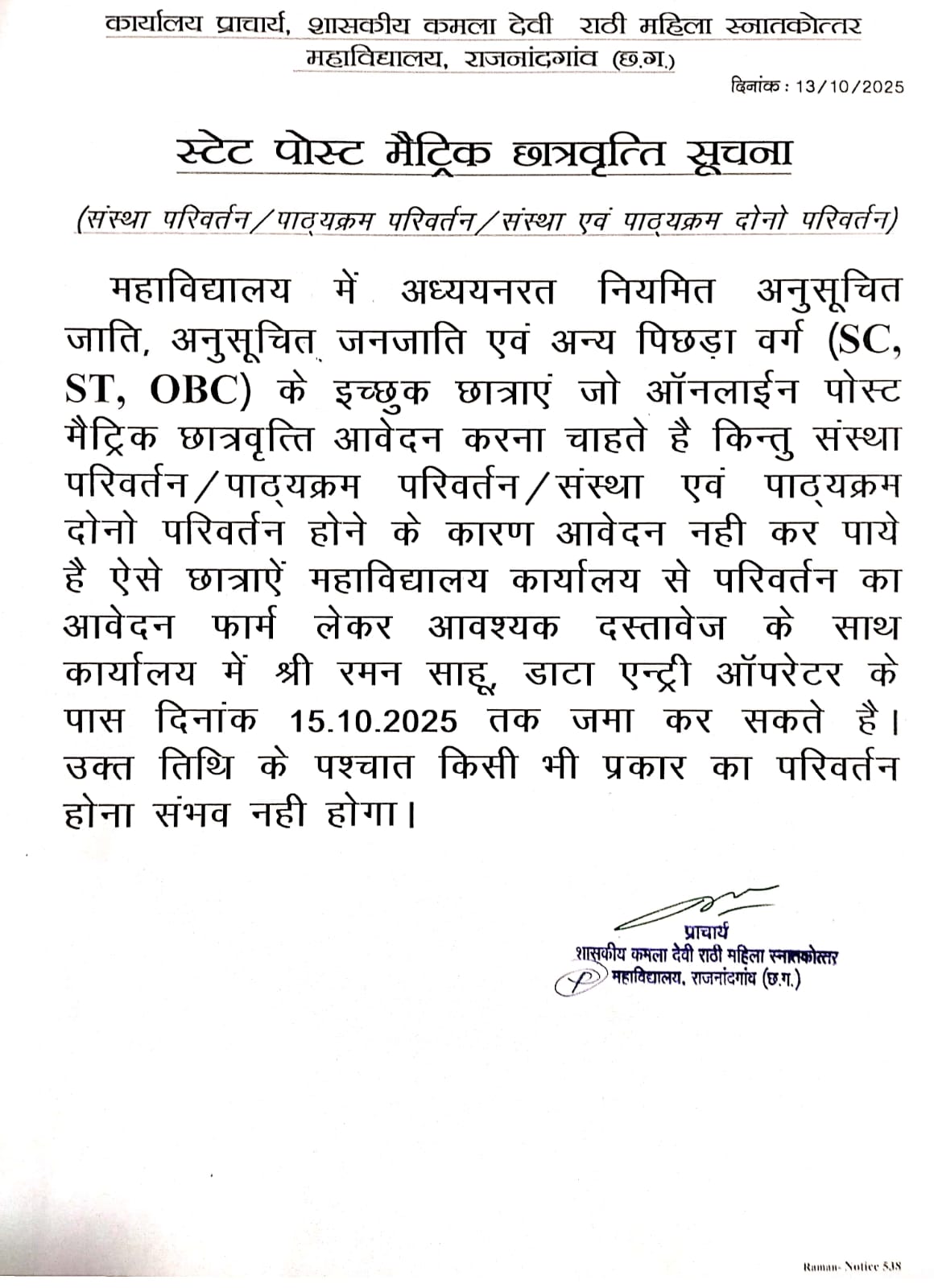 Extended Date of National Conference As we have received many requests for extension, the last date for submission of abstracts for national conference to be organised on 18-19 November, 2019 is extended upto 5th November 2019.Please send abstract on this email ncrapskdrm19@gmail.com
